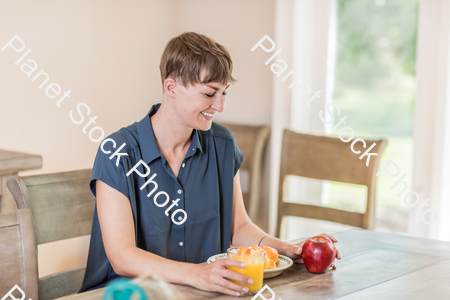 A young lady having a healthy breakfast stock photo with image ID: e809b665-abab-4f70-a373-15d08bfa4825