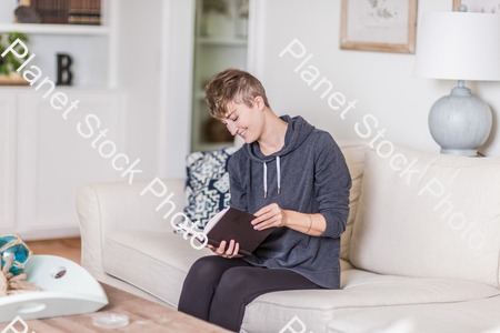 A young lady enjoying daylight at home stock photo with image ID: 19e167b8-8df6-4daf-951d-2f246b83e2d0
